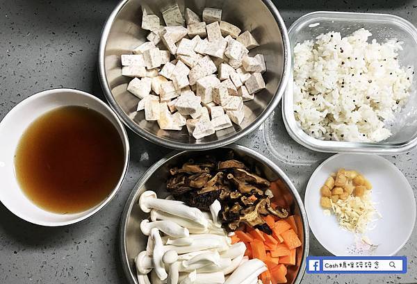 1️⃣ 乾香菇泡水後切絲備用,香菇水要留下來