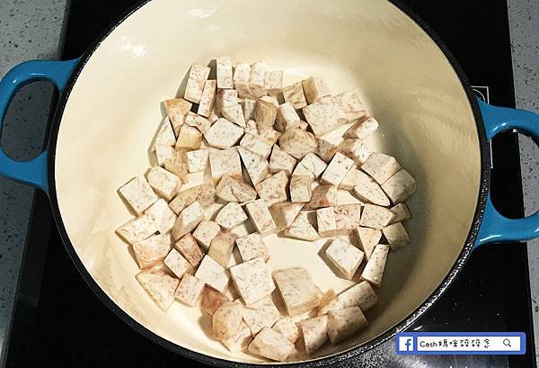 2️⃣ 鍋內放多一點油,將芋頭丁都稍微炸一下,再將多餘的油舀出來
