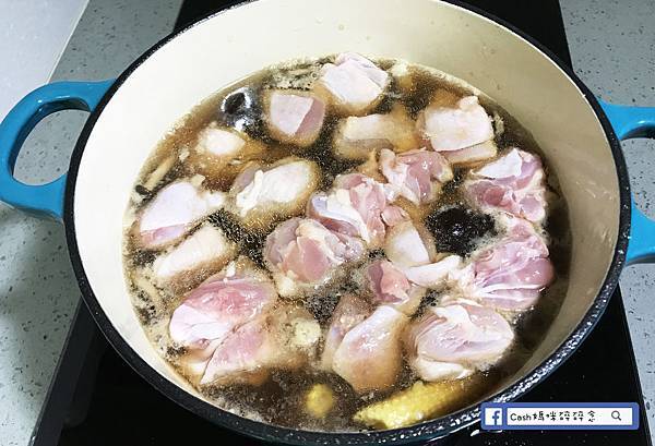 1️⃣ 乾香菇泡水,雞腿肉熱水川燙過