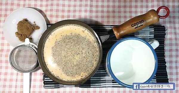 最後用濾網將茶葉渣過濾倒入杯中,再加入黑糖