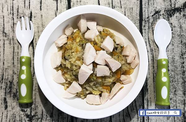裝盤後,擺上事先煮好的雞胸肉丁,開動了!!
