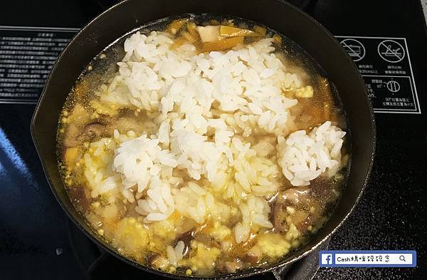 倒入一碗高湯南瓜煮軟後,加冷飯