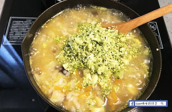 倒入一碗高湯,繼續煮到南瓜軟