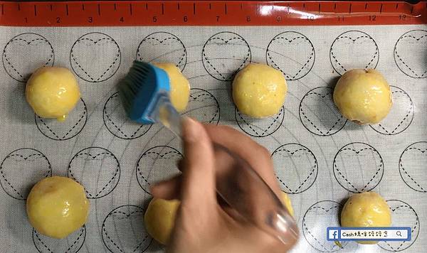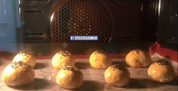 ▼月餅塗上蛋液,撒上黑芝麻