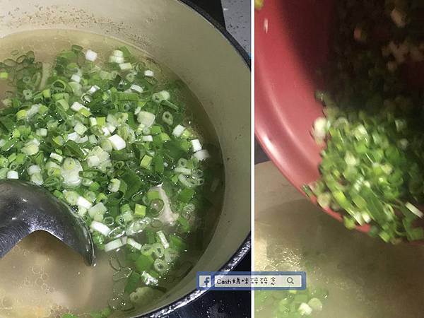 ▼起鍋前倒入蔥花,加入鹽 及 胡椒粉 調味