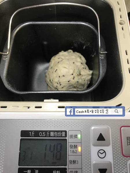 1️⃣ 將所有的材料依順序放入製麵包機,鮮奶 ➡️ 蜂蜜 ➡️ 鹽 ➡️ 植物油 ➡️ 麵粉 ➡️ 酵母粉 ➡️ 黑芝麻,然後設定揉麵團 + 一次發酵 。( 約 2小時 )