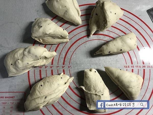 2️⃣ 將發酵完成的麵團從製麵包機倒出,分 8 份,揉圓 蓋上濕布 靜置 鬆弛5分鐘