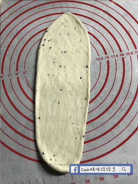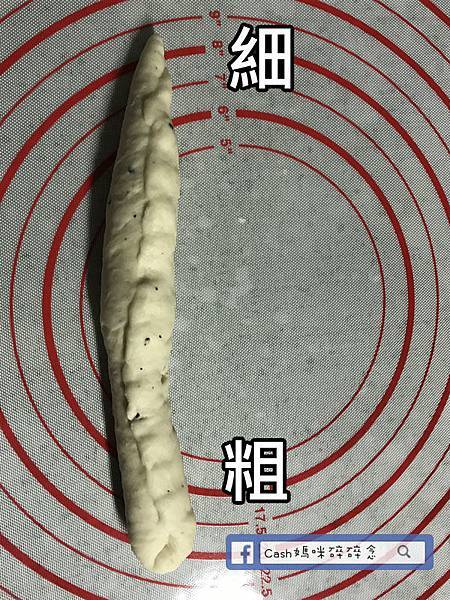 3️⃣ 將麵團 桿成長扁形,再捲成一條