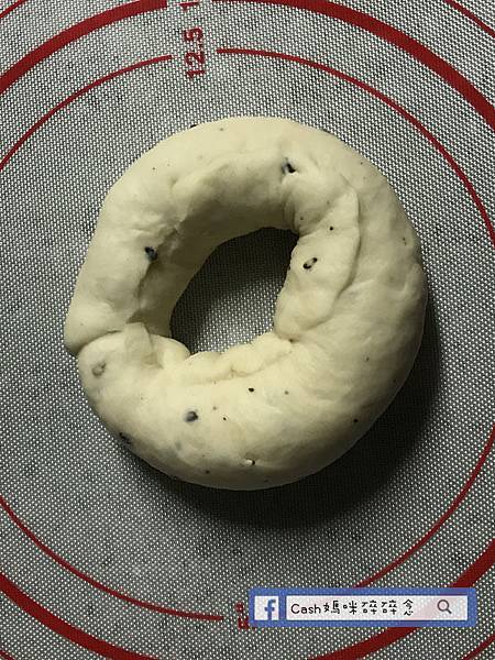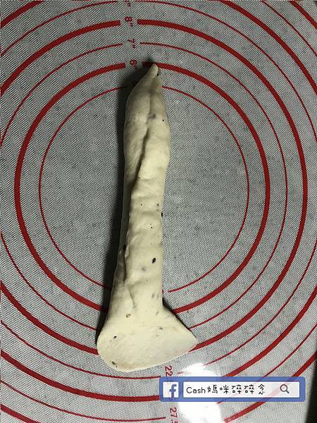 ▼以桿麵棍將 粗 的一側 桿開,麵團再繞成圈,用 粗扁 的那頭將 細頭 包起來,需要用手指稍微捏緊接縫處