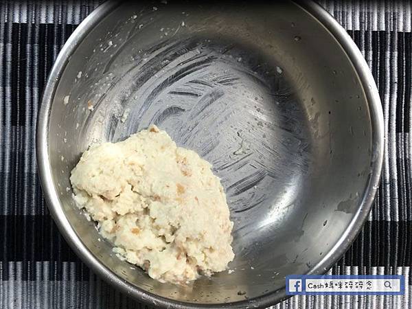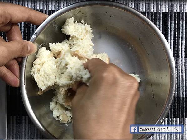 1️⃣ 鮮奶倒入白吐司,將吐司抓成一團 (鮮奶的量可斟酌加減) 麵團以不滴水,浸濕能抓成團為主
