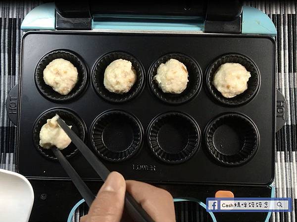3️⃣ 鬆餅機 (迷你塔烤盤) 預熱完成後,放入吐司麵團,蓋起等待 4分鐘