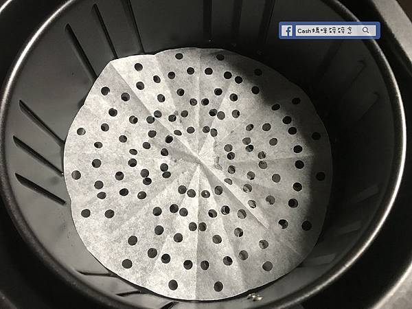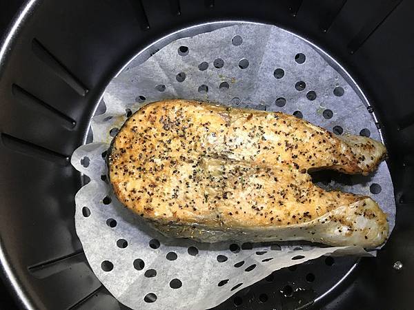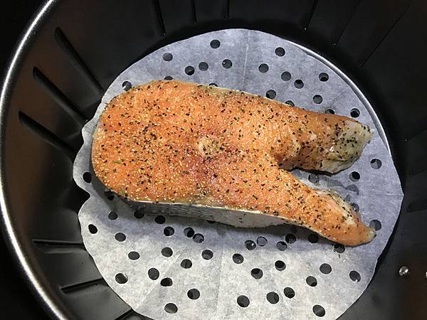 2️⃣ 氣炸內鍋鋪上烘焙紙,放上鮭魚片 (防沾)