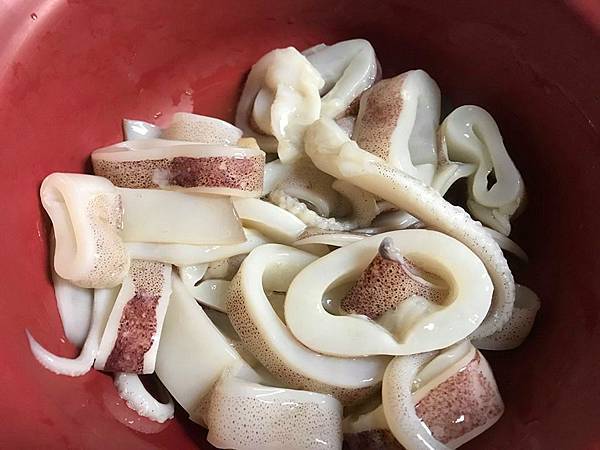 1️⃣ 透抽切圈,加入米酒稍微醃製一下 5-10分鐘