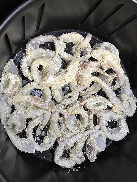 3️⃣ 反潮後,放入氣炸鍋炸籃,均勻地在表面上噴油