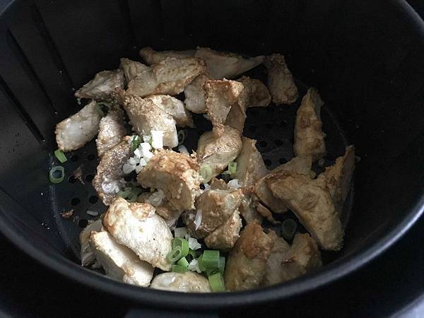 5️⃣ 完成後 將蔥花與蒜末丟入拌一下,氣炸
