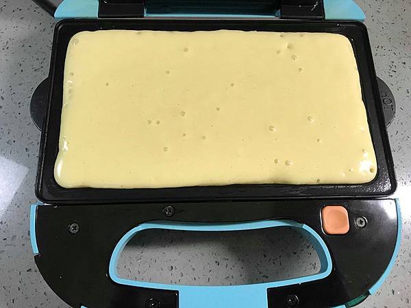 2️⃣ 材料 B 充分攪拌均勻,倒入鬆餅機(帕尼尼烤盤) 加熱