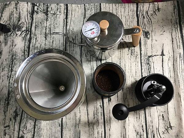手搖磨豆機 + 不鏽鋼濾網壺 + 手沖壺 + 冰滴壺